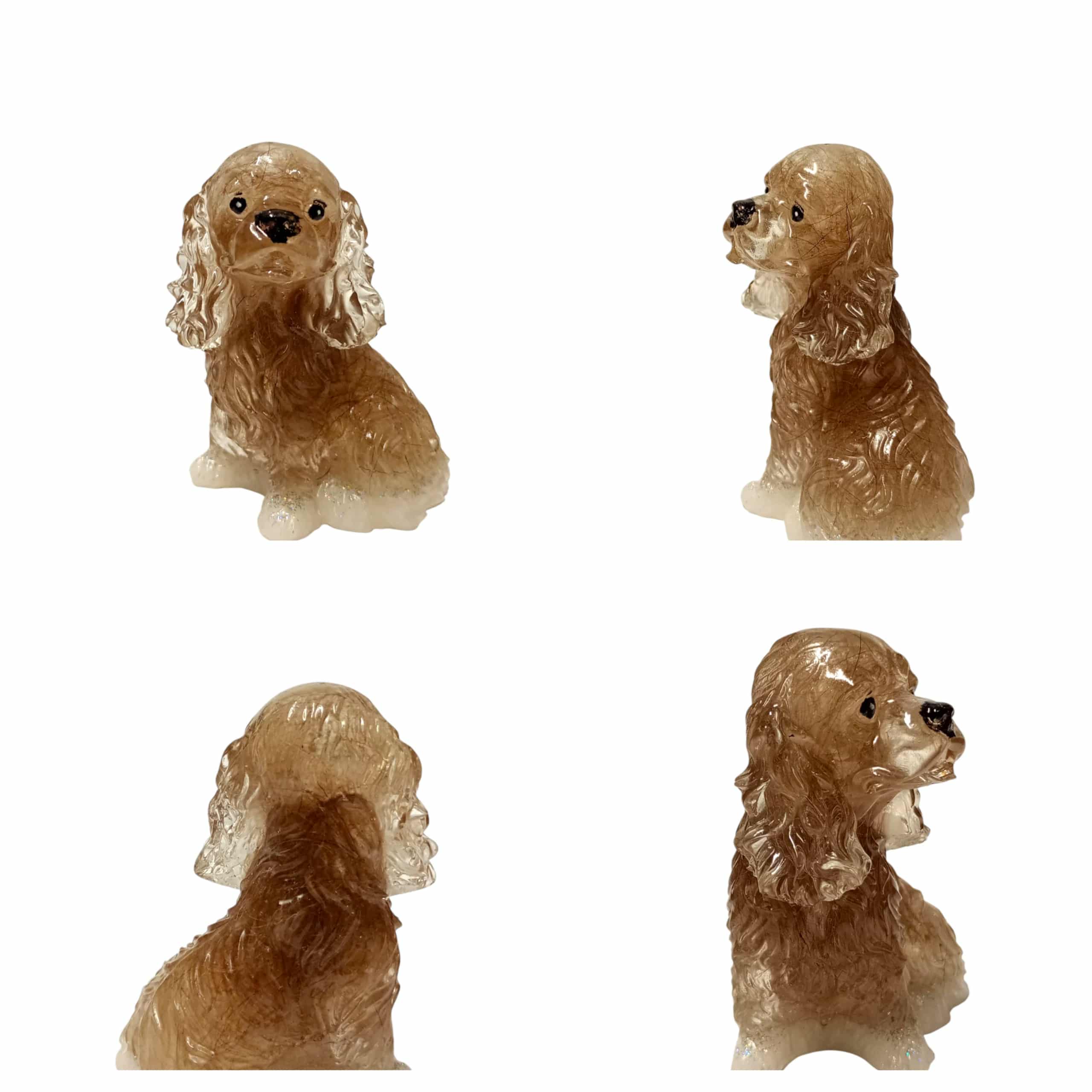Epoxidová soška psíka väčších plemien (podľa vášho vizuálneho uváženia), ktorá vám môže vďaka zaliatej srsti pripomínať vášho zvieracieho spoločníka. Spodná časť psíka môže byť akejkoľvek farby a môže obsahovať aj kremačný popol vášho psíka. Aby bol výsledok vizuálne estetický, snažím sa vždy o harmonickú vyváženosť farieb v náväznosti na farbu srsti psíka.