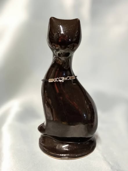 Nie každý je však naklonený mať takúto pamiatku ako osobný šperk. A tu prichádza naša Blackie, ktorá vám bude ako milá interiérová soška slúžiť i ako spomienka na vašu mačičku či kocúrika. Zavesíme jej na krk 2,5cm srdiečkový medailónik, v ktorom navždy uchováme hmatateľné a vizuálne stopy na jeho existenciu.