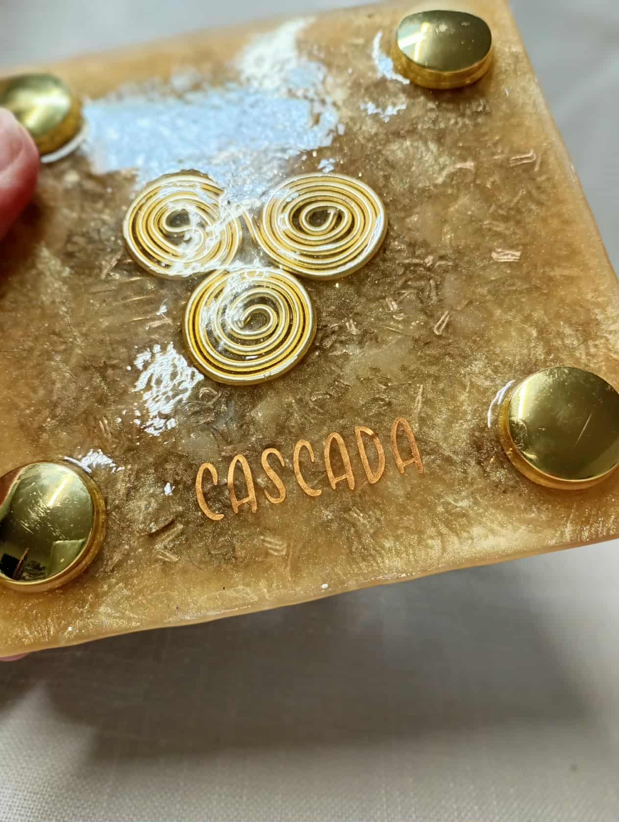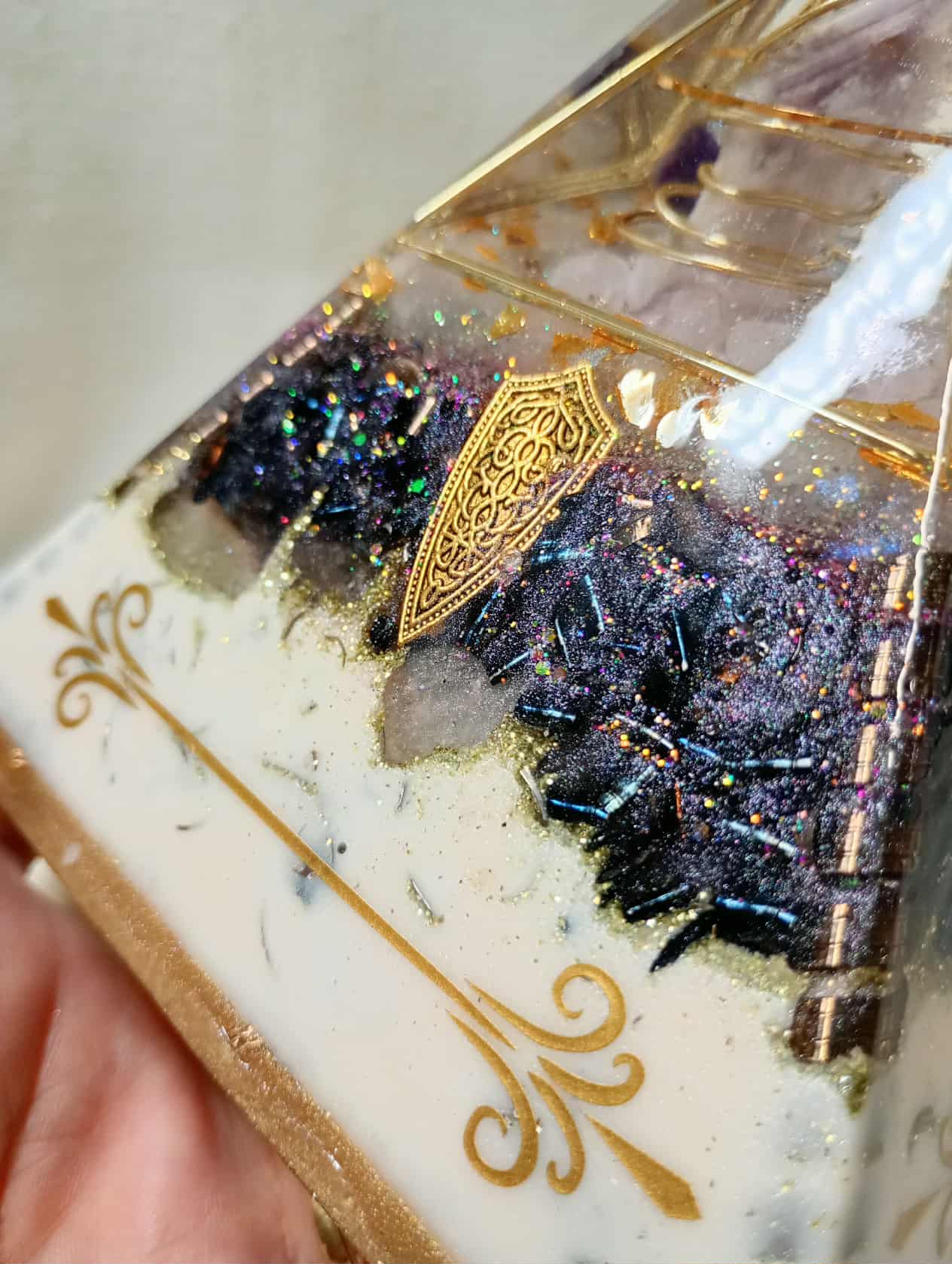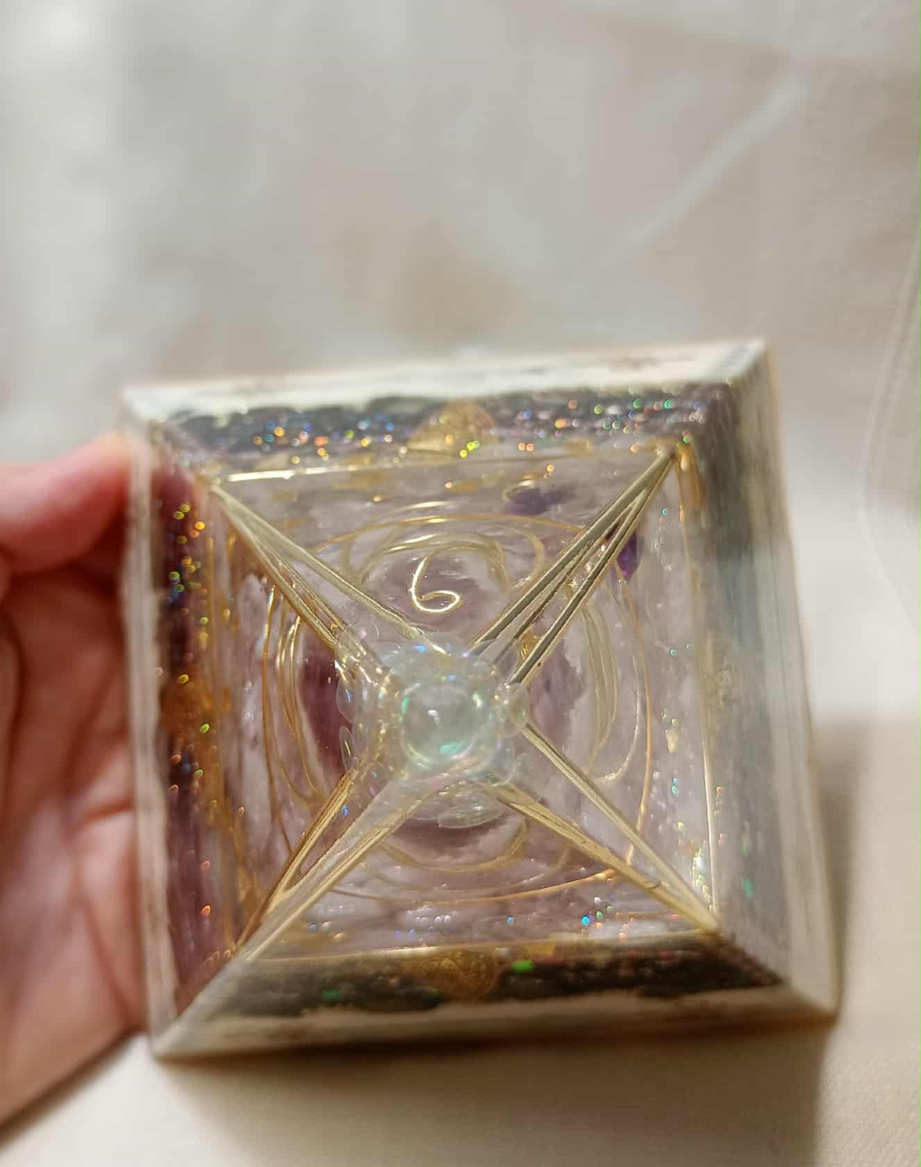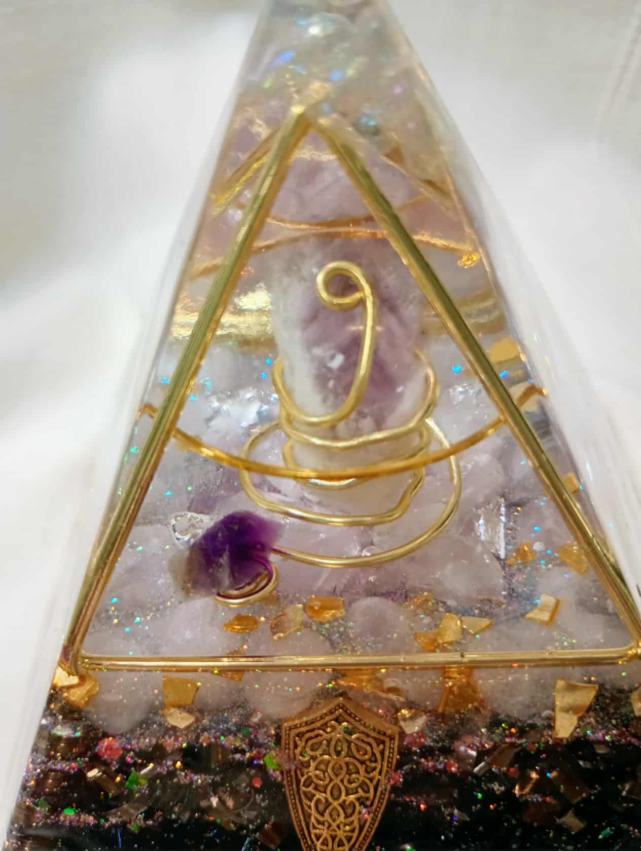 Nádherná a jedinečná autorská 12,5 cm orgonitová pyramída, v ktorej sa spája funkčnosť, moderný dizajn i nádych slovanstva.